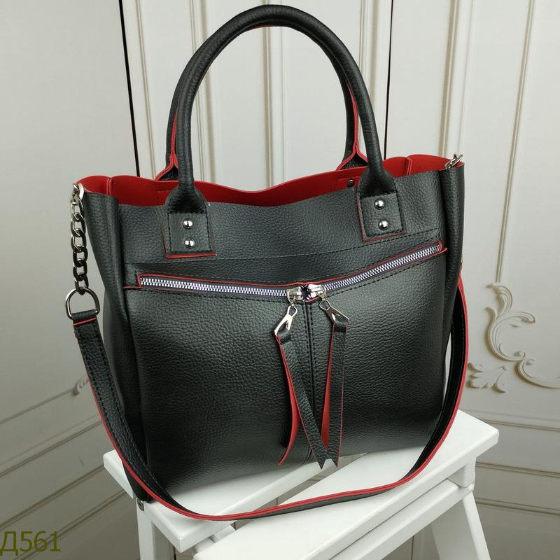 🆕Велика містка сумочка, вміщує формат А4🔥 Код Д561 Матеріал: шкір зам Розмір: ширина внизу сумки 31 см, висота 27 см, дно 12 см. Ручки висотою 14 см. Плечовий ремінець 97 см. Всередині одне основне відділення, поділене карманом-перегородкою на змійці, кишенька для телефону, закрита кишенька. Виробництво 💙💛