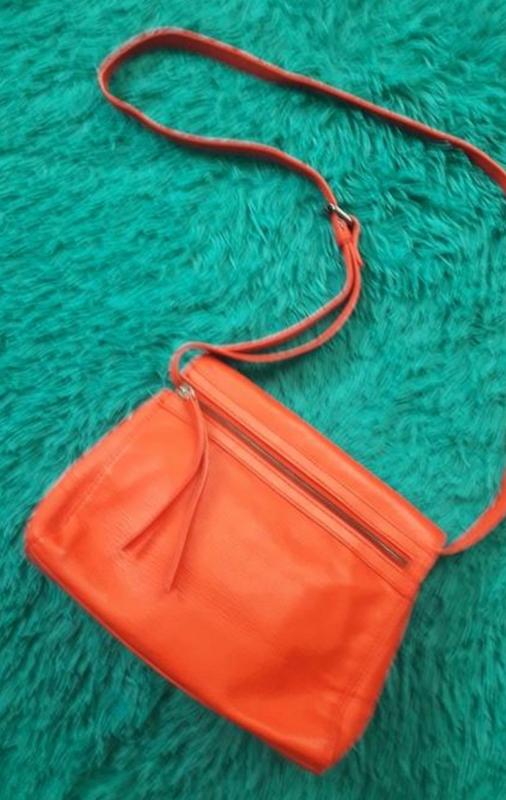 Качественная, кожаная сумочка, очень вместительная, мягкая, красивого кораллового цвета. Фото немного меняет цвет. Без всяких дефектов, состояние новой.