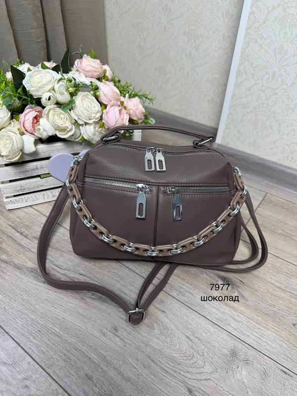 👜Стильная сумочка. 🍀Изготовлена из экокожи. 🍀Размер: ширина 26 см., высота 17см, дно 12см. ✔️Ремешок 133 см. ✔️Два отдельных отделения на молнии + три боковых кармана также на молнии. ✔️Форма: мягкая. Сумочка подходит для повседневного использования, на прогулки и встречи с друзьями. Высокое качество материалов и исполнения. Удобная и практичная модель, которая станет незаменимой в вашем гардеробе. 🟡7977