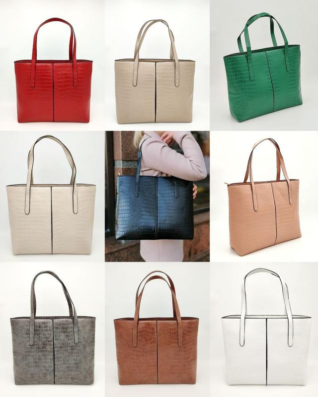 сумка шопер цвета зелёный бежевый черны розовый 40/30/12 эко кожа ручки 22 см большое отделение на молнии и маленький карманчик на молнии