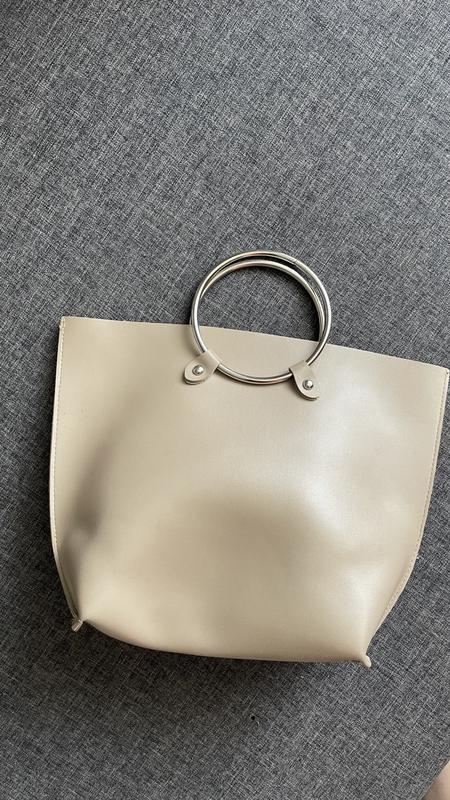 Бежева сумочка, середнього розміру,вмістка ручки-кільця без застібки