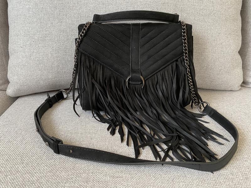 Продам черную сумку cropp, материал под замш, небольшая, интересного дизайна. носилась несколько раз, состояние почти идеально. Ремешки и сама сумка не затертые. Один отдел, есть маленький карманчик внутри