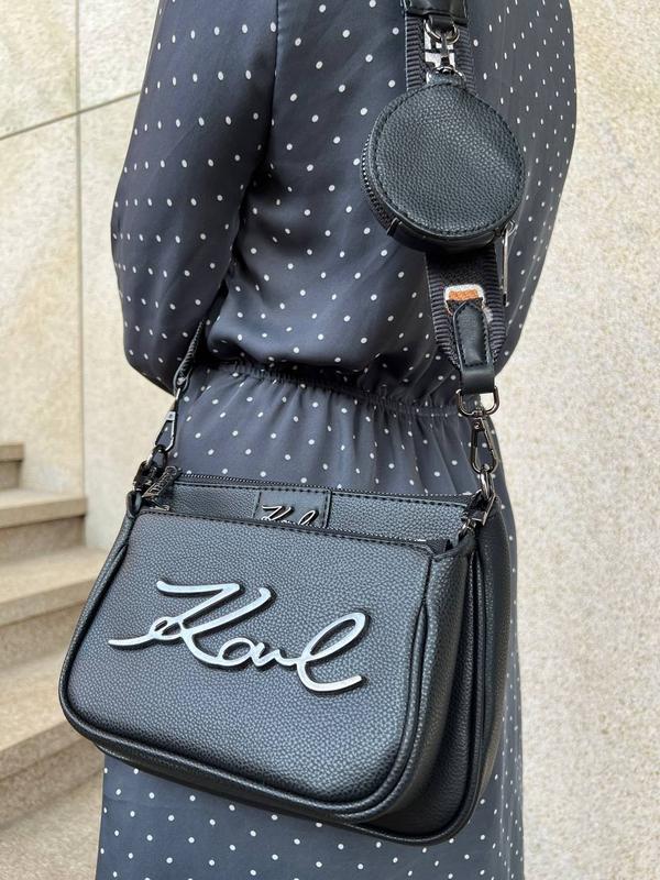 👜Karl Lagerfeld (Арт: 1802) 📐 Розмір: 24 х 16 х 10 см 🧵 Матеріал: екошкіра 🔎 Опис: Сумка виготовлена з екошкіри. Внутрішня підкладка із бархатного текстилю. Сумка з двох частин, у кожній з яких одне велике відділення (у більшій є невелика кишенька всередині). Ремінець на карабінах, шириною 5 сантиметрів і довжиною від 63 до 105 сантиметрів максимум. Також на ремінці є невеликий гаманець. 🛍Безкоштовне пакування: брендова коробка, наповнювач, пильник, документи