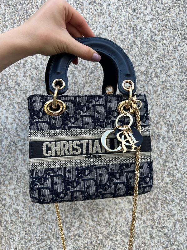 Dior mini textile (Арт:1024) 📐 Розмір: 19 х 16 х 9 см 🧵 Матеріал: текстиль 🔎 Опис: Сумка виготовлена з щільного текстилю з фірмовою прошивкою, прикрашена фурнітурою та брелком золотого кольору. Є одне відділення з темного текстилю з фірмови принтом, невелика нашивка з екошкіри з написом бренду та гаманець. Є брендовий текстильній ремінь-ланцюжок довжиною 110см. 🛍Безкоштовне пакування: брендова коробка, наповнювач, пильник, документи