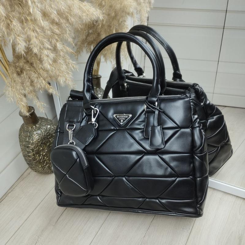 Очень стильная новинка на три отделения из экокожи ПРЕМИУМ качества 🔥 🔥 🔥 Вмещает формат А4 ♥️ Код: Д599 Размер: ширина по низу-33 см, высота-23 см, дно-14 см. Высота ручек 15 см, широкий плечевой ремешок регулируется до 130 см. Маленький кошелек 8*11 см. Материал: Эко кожа премиум качества, очень мягкая и приятная на ощупь. Подкладка- плотная ткань Особенности: три отделения, закрываются на молнию. По бокам есть кнопочки, витрив их сумочка становится шире. Внутри открытый карман и потайной карман на молнии. С тыльной стороны - карман на молнии.