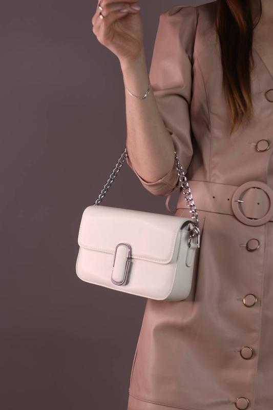 💎Розмір: 22х14х5 💎Матеріал: Еко шкіра Сумка виготовлена з еко шкіри, має одне відділення, яке застібається на застібку. Має внутрішню кишеньку на блискавці та внутрішню відкриту кишеньку. Підкладка виготовлена з текстилю. Має ланцюжок який не відкріплюється. В комплекті є ремінь текстильний з написом бренду Marc Jacobs на карабінах, шириною 4 см, регулюється від 75 до 125 см. Фурнітура срібного кольору. Пакування: брендова коробка, папір, наповнювач, наліпка.
