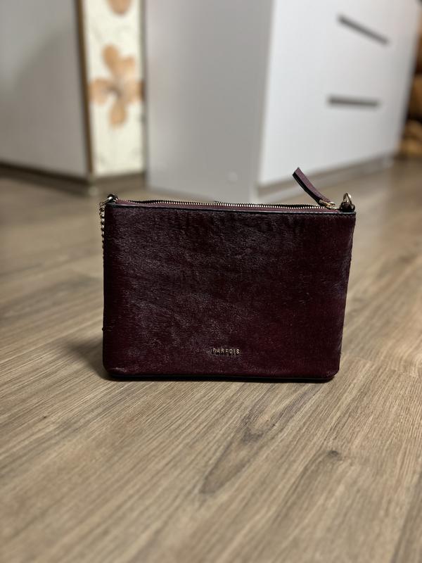 Очень оригинальная сумочка Parfois. Спереди натуральный мех. На один отоде. Есть несколько недостатков на меху (см. последние фото). Сумка новая абсолютно, но 76 в Шаффе, возможно чуточку миль покусала. Можно эти залысинки подкорректировать или просто не обращать внимания.