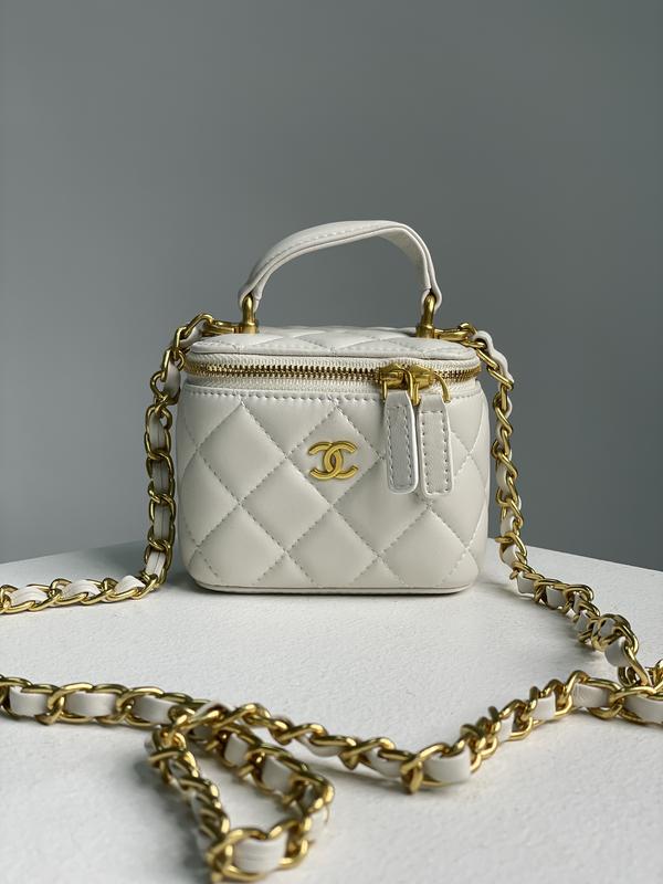 Арт: 99232 💵 3200 грн 📐 Розмір: 11 х 10 х 7 см 🧵 Матеріал: Шкіра 🔎 Опис: Сумка виготовлена з гладкої шкіри, має ромбоподібну прострочку. Всередині одне невеличке відділення, є ще менший кармашок. Зачиняється на застібці. Підкладка з щільного текстилю. Для носіння у руці є невеличка ручка, а через плече - є довгий тоненький ланцюжок з вплетеною шкірою (не відстібається). Комплектується у фірмовій коробці на магнітах та пильовику.