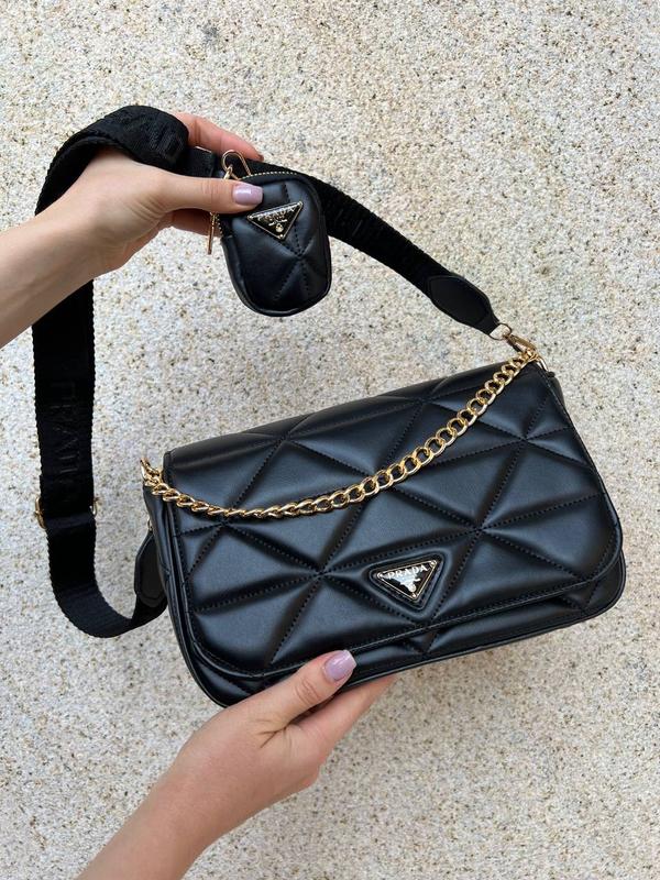 👜Prada gold black (Арт: 4001) 📐 Размер: 28 х 18 х 8 см 🧵 Материал: эко кожа 🔎 Описание: Сумка выполнена из качественной экокожи. Внутри одно отделение, подкладка текстильная, есть кошелек на молнии, эмблема с надписью бренда, отдельный кошелек с молнией, ремешок длиной 140см с возможностью регулировать длину. 🛍Бесплатная упаковка: брендовая коробка, наполнитель, брючина, документы