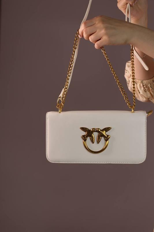 PINKO white Арт: 1802 Описание: 💎Размер: 24х12х7 💎Материал: Эко кожа Сумка изготовлена из качественной эко кожи, имеет одно основное отделение, которое застегивается на молнию. Подкладка изготовлена из эко кожи черного цвета. Плечевой ремень - цепочка со вставкой из эко кожи, которую можно носить извлеченным на всю длину или составленным в два раза. Фурнитура золотистого цвета. Упаковка: брендовая коробка, бумага, наполнитель, наклейка. 1790 грн.