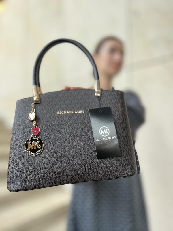 Сумка изготовлена из высококачественной экокожи, украшена логотипом золотого цвета в фирменном стиле МК. Имеет 2 отделения с черной текстильной подкладкой, небольшая нашивка из экокожи с надписью бренда и 2 кармана, один из которых на молнии. Сумка имеет ремешок с возможностью регулировки до 100см. и фирменный брелок. Размер: 27 х 20 х 15 см 🛍Бесплатная упаковка: белая коробка, наполнитель, птичка, документы