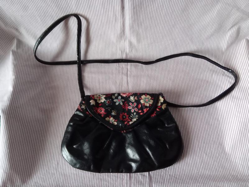 Стильна,з квітковою обробкою. На блискавці та довгому ремінці. Застібка-магнітна кнопка. 25х16 Ремінець-110 см