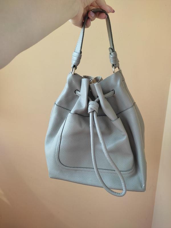 Серая сумка мешок Выполнена из эко кожи есть потертости на фото все видно Девочки продаю все по приятным ценам. Смотрите мое другое объявления, так выгодно брать несколько вещей. Пересылаю Укр., Новой, Mest по почте, после оплаты, или из-за безопасного оплата на шкафу