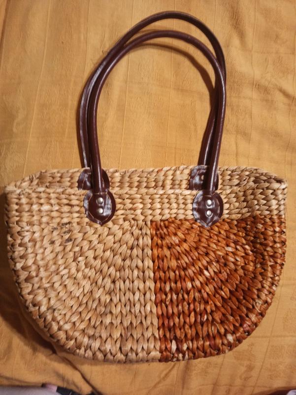 Сумка из соломы с двумя ручками на плечо, ширина 40 см, высота 25 см, ширина дна 9 см, длина ручек 65 см