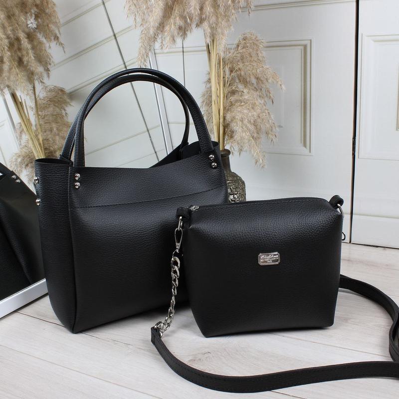 Топовые комплекты две сумки по цене одной🔥🔥 ☑️Материал: кожу. зам. люкс качества 🔥 фурнитура-серебряная ☑️Размеры: ширина внизу 27 см; высота 25 см; глубина 13 см. Размер клатча: 17 * 16* 10 см. ☑️Одно отделение на молнии, внутри клатч. Без подкладки. В комплекте один съемный регулируемый плечевой ремешок (можно надевать на клатч или на сумку), длина регулируется до 170 см. Производство - Украина 💙💛