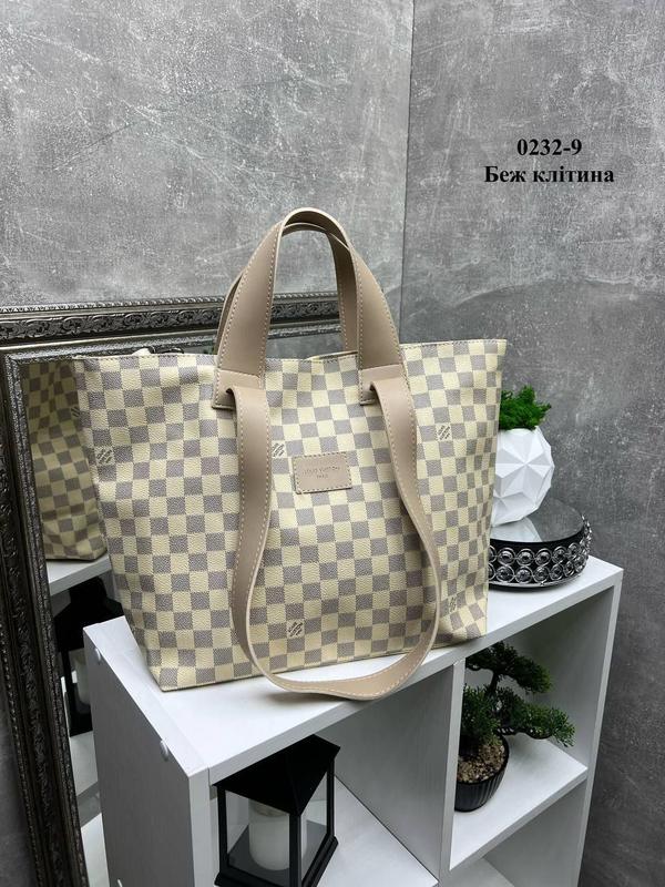 Снова в наличии! Легко вмещает формат А4! LOUIS VUITTON - вместительная большая и практичная женская сумка-трансформер Ширина по дну 32 см. Ширина зверху 42 см. Висота 30 см. Дно 14 см. Высота длинных ручек - 28 см. Одно отделение на молнии, разделенное пополам перегородкой на молнии. Внутри открытый карман и карман на молнии. По бокам сумки карабины для затяжки уголков внутрь. Над главной молнией кнопка. На обратной стороне карман на молнии. Турецкая экокожа. Фурнитура - металл, цвет - серебро