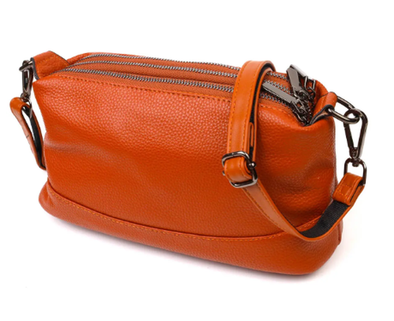 Сумка кожаная через плечо рыжая женская 3 отделения