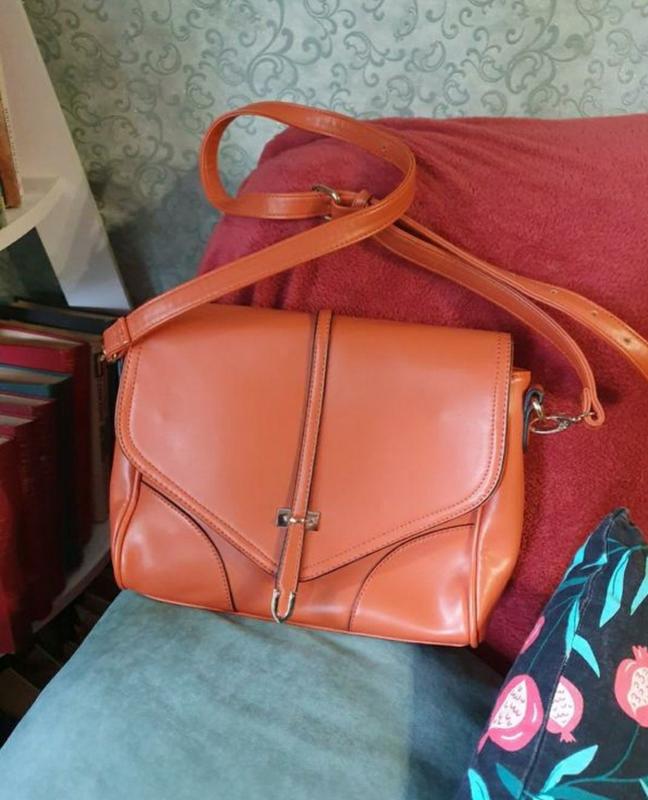 Оранжевая прямоугольная сумка из искусственного материала, состояние - отлично.