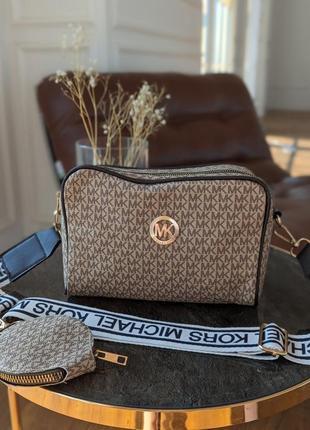 Имеет два независимых основных отделения на молнии. На широком ремешке расположена монетница, которую можно отстегнуть. Внутри есть подкладка. Качественная фурнитура брендируется, золото. Материал: Эко кожа. Размер: 22 см в ширину по дну. 13 см. высота. 8 см глубина.