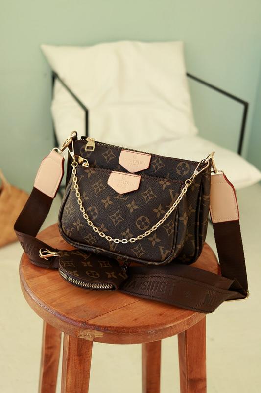 код коричневый+корич. + коричневый ремешок 20022-1 коричневый+рыжий+ коричневый ремешок 20022-2 коричневый+беж.+коричневый ремешок 20022-3 коричневый+беж.+ зеленый ремешок 20022-5 черная+ черная клетка 20022-7 черная+ стеганая 20022-8 бежевая + розовый ремешок 20022-9 коричневая клетка + коричневый ремешок 20022-12 черная нейлон 20022-14 черная + черная луи 20022-16 Размер большого клатча 22х15х5 см Размер меньшего 17х12х5 см. Диаметр круглой сумочки 9 см. В комплекте длинный ремень, максимальная длина которого 120 см.