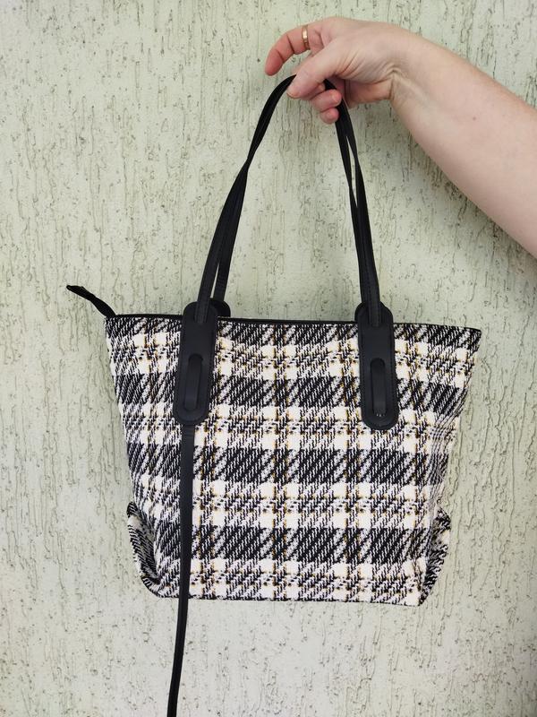 Качественная стильная сумка на одно отделение. Внутри карманчик на телефон и карман-кошелек на молнии. Молнии работают легко. Подкладочная ткань прочная и не порвется от малейшей зацепки. Фурнитура: золото. Материал : мягкий текстиль. Высота 28 см Ширина по дну 29 см Ширина по верху сумки 40 см Глубина по дну 15 см. Цвет черный/молочный с желтой нитью, смотрится богато. Заходите в мой магазинчик, там есть много интересных качественных товаров: нижнее белье, носки, колготки, кофточки, штанишки, шапочки, тапочки, текстильные изделия для дома, термобелье и многое другое. Строй рада видеть вас у себя в гостях. Подписывайтесь на свои обновления. Высылаю новой почтой и укроштой, оплата на карту Приватбанка и безопасная оплата на Шафе. Пишите всем ответьте