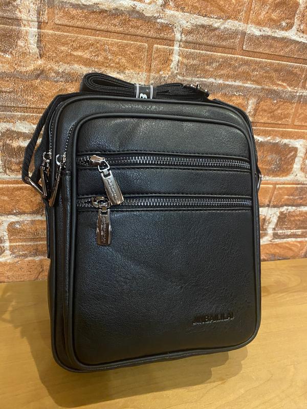 Качественная эко-кожа. Фурнитура маркирована, прочная , большие металлические змейки. Есть ручка под пальцы, длинный ремень регулируется . Длина 28 ширина 20 см.