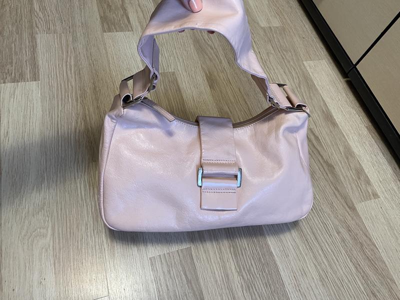 Стильная кожаная сумка багет,достаточно вместительная,красивый пастельный розово-рудровый цвет,состояние идеальное,без царапин и потертостей,нюанс последнее фото ( над молнией слегка разошлось ),молния работает ,все ок . Замеры : ширина 30, высота 20(возле ручек),высота посередине 16,,длина молнии 27,,боковая ширина (внизу 9,сверху 6 ),длина ручки 49,ширина ручки 5 см,на плече носить комфортно