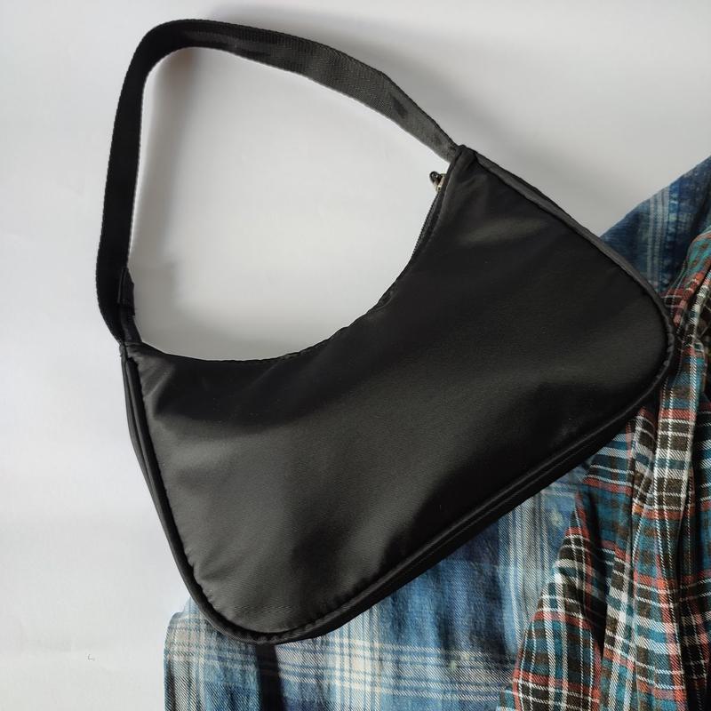 ◽ Компактная черная сумочка Багет🖤🤍 ◽ Материал - нейлон ◽ На подкладочке ◽ Шир 24 * Вис 12/16 см ◽ Коротка ручка 40 см ⠀