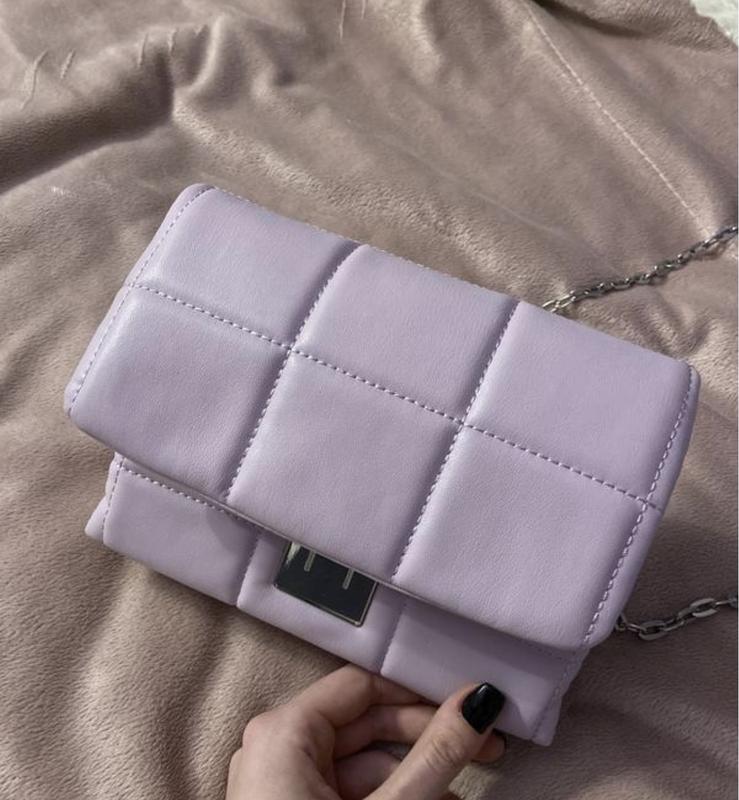 Продам новую сумку от фирмы Pull & Bear Полнышком идеальное состояние, в эксплуатации не была ни разу Имеет длинную металлическую цепочку Сумка лавандового цвета Содержимое, на одно отделение