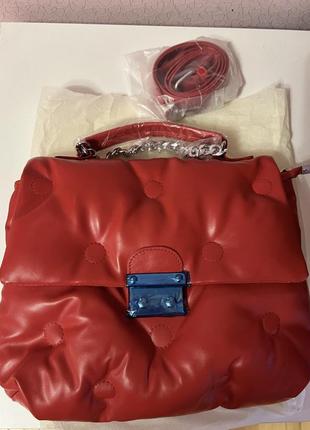 Нова червона сумка, є довгий ремінець, в середині є кишенька.