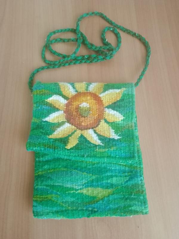 Размер: высота - 17 см, ширина - 15 см, длина клапана - 12,5 см. Длина шнурка - 127 см Выполнена в технике гобелен