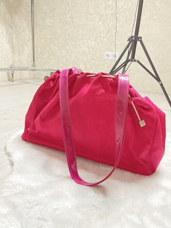 Сумка на спице ( она неровная так и задумано) малинового цвета с лаковыми ручками на кнопке. Италия