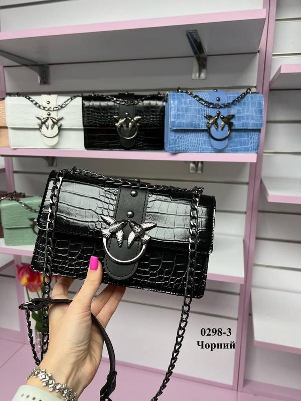 Код 0298-3. ▪️Материал: Эко кожа с крокодиловым принтом. ▪️Размер: 23 см ширина. 14 см высота. 8 см дно. Клапан на магнитах. Внутри одно отделение, подоленое пополам карманом на молнии. Длина цепочки 130 см