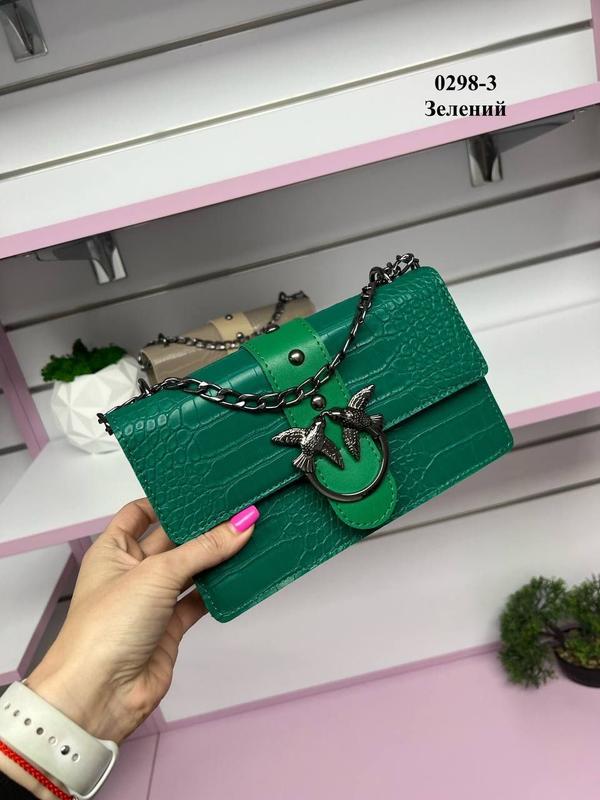 ▪️Материал: Эко кожа с крокодиловым принтом. ▪️Размер: 23 см ширина. 14 см высота. 8 см дно. Клапан на магнитах. Внутри одно отделение, подоленое пополам карманом на молнии. Длина цепочки 130 см
