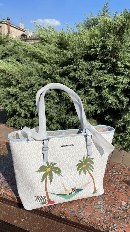 Новая, упакованная, с бирками, пыльником и фирменным пакетом Майкл Корс. Jet set large tote Размер 37х26х12 см Цвет - optic white multi Фурнитура – серебро