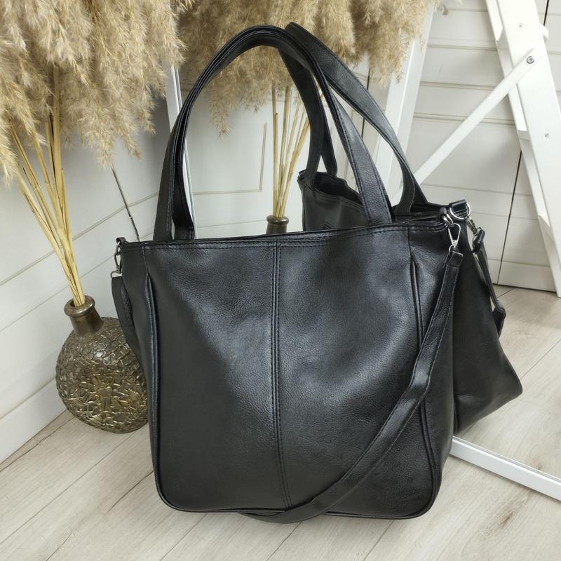 Большая, вместительная сумочка♥️ Вмещает формат А4 Код Д584 ✅Материал: очень приятная на ощупь эко кожа Турция, подкладка-плотная ткань. ✅Размеры: 31 см ширина по дну. 37 см ширина вверху. 33 см высота. 10 см дно. Висота ручок 24 см. Довжина плечового ременя 110 см. ✅Особенности: Одно отделение на молнии. В середине потайной карман на молнии.