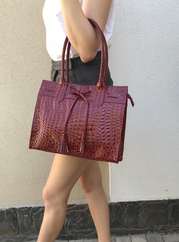 Новая,большая,лаковая сумка,цвет бордо с тиснение под крокодила,оффисная