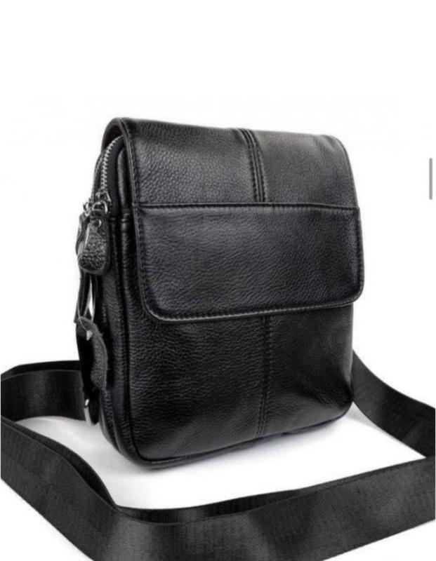 Сумка изготовлена из натуральной кожи с добавлением надежной фурнитуры. Сумка имеет три отделения, два из которых закрываются при помощи молний. Дополнительно сумка закрывается с помощью перекидного клапана на кнопках-магнитах. На лицевой стороне сумки под клапаном расположен карман, на тыльной стороне также расположен карман на молнии. Размеры: - ширина 20 см; - высота 23 см; - глубина 6,5 см