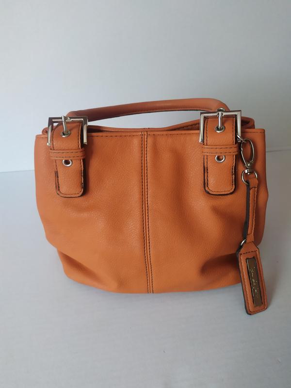 Женская сумочка яркого оранжевого цвета в идеальном состоянии. Имеет два отделенных отделения и маленькие карманчики для драбничек.. Сумочка небольшого размера, но достаточно вместительная. длина 25 см высота: 18 см ширина по дну 20 см ручки 17 см