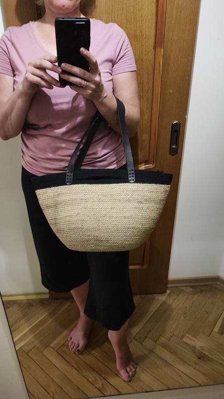 сумка из джута и шнура ручки кожа размер дна 24х17см высота 25см верх 43см ручки 60см есть молния и карман