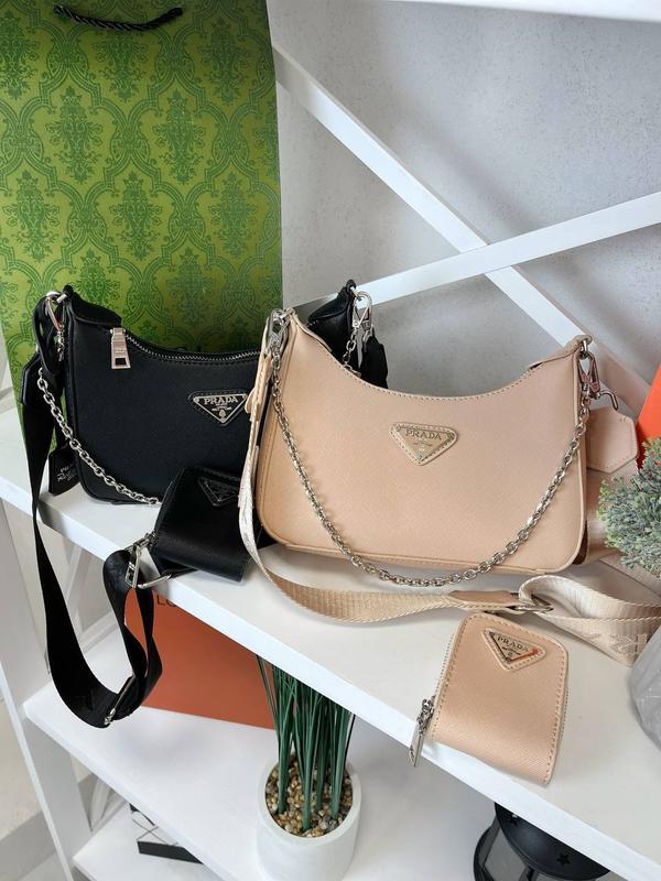 Новинка ❤️🔥 Сумка Прада 2 в 1 с кошельком Цена 760 грн расцветка: черный Материал: Эко кожа комбинированная текстиль плотный водостойкий и держит форму Ремешок регулируется ✅ на молнии, На подкладке Кошелек/косметичка в комплекте Размер: 38/28