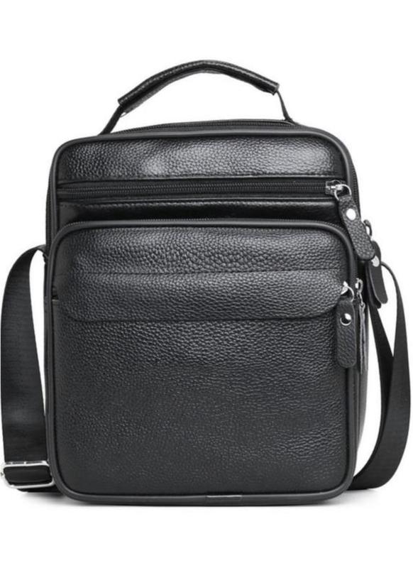 Сумка выполнена из натуральной кожи с применением надежной фурнитуры. Сумка имеет одно вместительное отделение на молнии, внутри карман на молнии. На лицевой стороне расположены 3 кармана на молниях, на тыльной стороне один карман на молнии. В комплекте идет удобная ручка и регулируемый плечевой ремень. Размер: - ширина - 20 см; - высота 25 см; - глибина 7 см.
