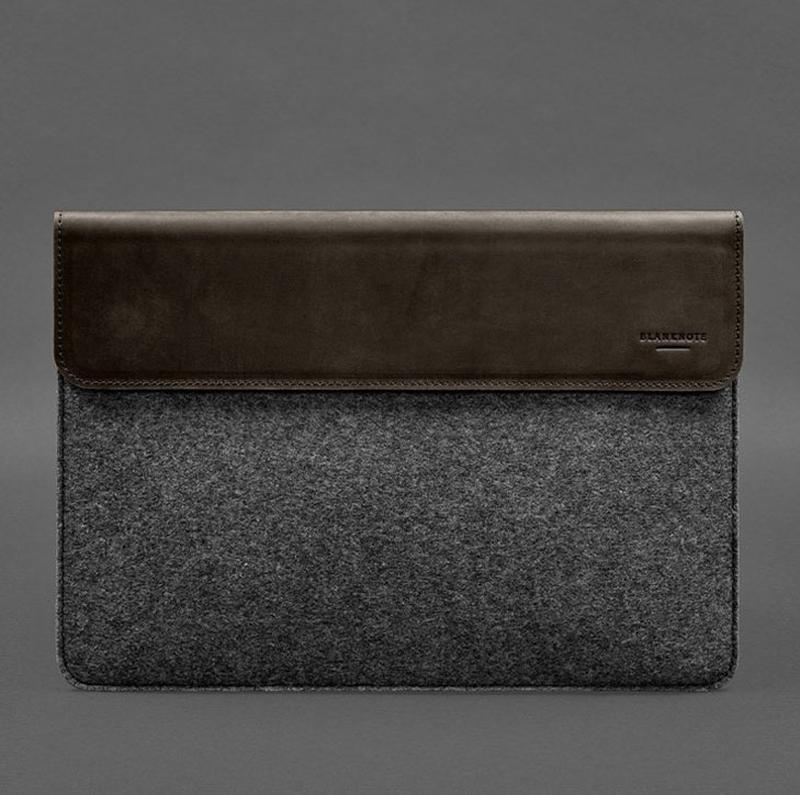 Чехол-конверт кожа фетр на магнитах для macbook 13'' темно-коричневый crazy horse