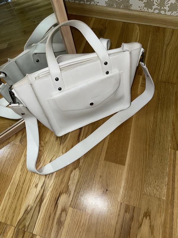 Удобная сумка белого цвета Приятная на ощупь Есть 2 кармана внутри, один снаружи