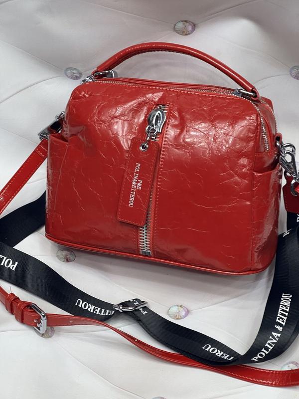 Polina & Eiterou ⠀ Код товара: 9258-3 R Цвет: Red (Красный) Материал: Натуральная кожа Комплект: 2 ремешка на плечо (тонкий кожаный и текстильный широкий) Размеры: 25×12×20
