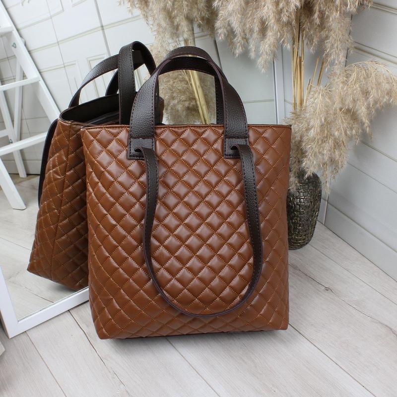 🔥Большая вместительная сумка. Вмещает формат А4♥️ Код: Д612 Цвет: терракот. Материал: эко кожа. Подкладка-плотная ткань. Размер: ширина по дну 30см. Высота 35 см, дно 11 см. Высота плечевых ручек 29 см. ✅Сумка закрывается на молнию, в середине открытый карман и потайной карман на молнии. Производство 🇺🇦