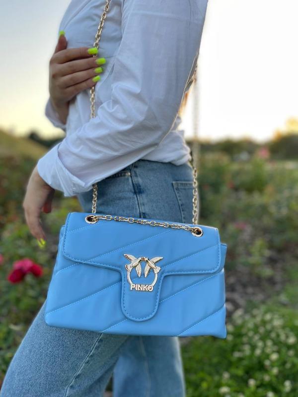 ( Арт 012) 🇹🇷Производитель: Турция 🪡Материал : эко кожа 📏Размер : 28*18 ✏️ Описание Сумка выполнена из эко кожи голубого цвета. Сумка на одно отделение, в середине карман на молнии, имеет цепочку золотого цвета.
