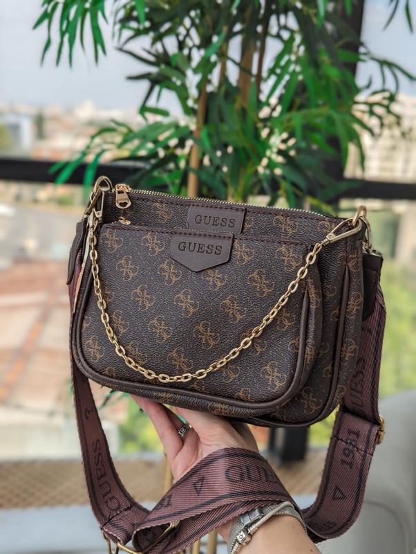 Сумочка Guess 3 в 1 Кольори: черный белый молочный коричневый Материал: эко-кожа Размер большого клатча 22х15х5 см Размер меньшего 17х12х5 см. Диаметр круглой сумочки 9 см. В комплекте длинный ремень, максимальная длина которого 120 см.