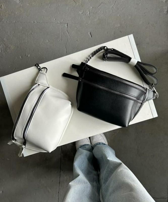 Сумка на плече/через плече типу бананка (чорна, біла, бежева)