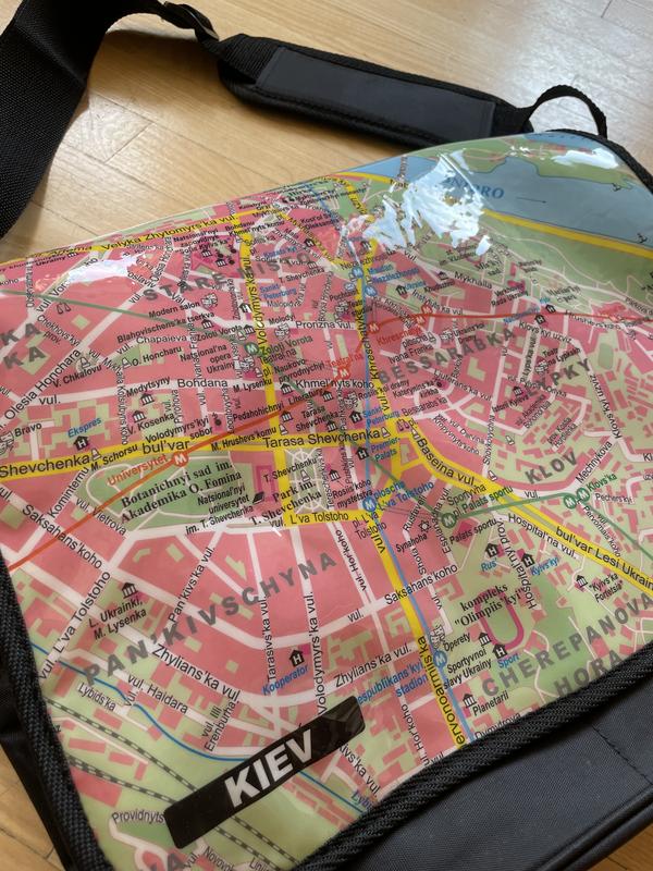 Оригінальна сумка з картою Києва Дуже вмістка ,має багато кишень Розмір 35х32 см ширина 6 см Нова ,не була в користуванні Ремінь можна корегувати по довжині
